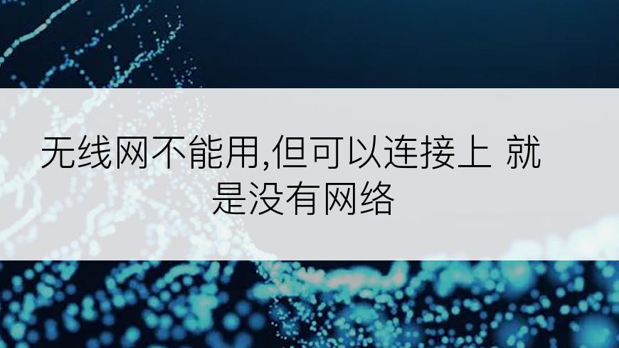 无线网不能用,但可以连接上 就是没有网络