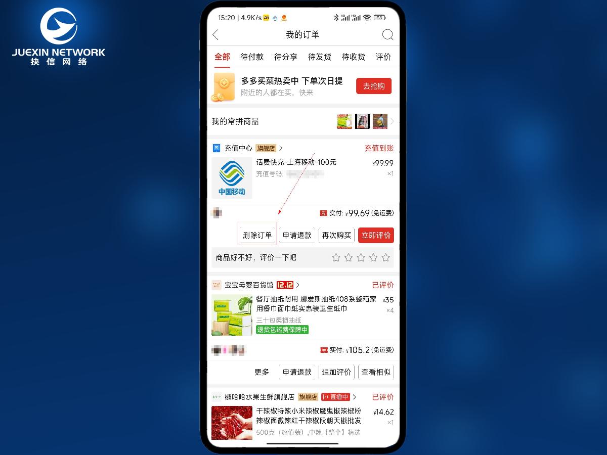 关于拼多多购物后如何删除相关问题,可以在全部订单列表中,点击价格下面的删除按钮就可以,以下介绍具体操作过程。