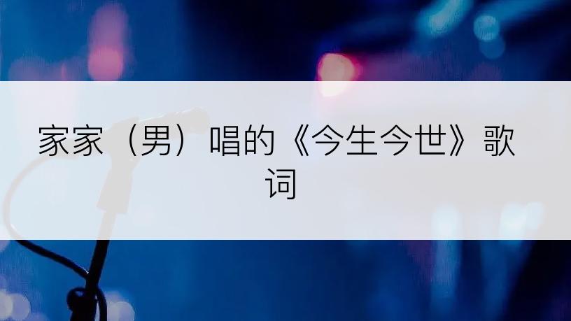 《今生今世》 是家家(男)演唱的歌曲,时长04分51秒,如果您对这首歌曲歌词比较中意,那我们就一起来学习和分享这首歌曲歌词吧!