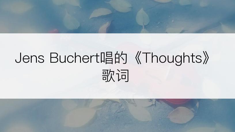 《Thoughts》 是Jens Buchert演唱的歌曲,时长06分48秒,该歌曲收录在Jens Buchert2021年的专辑《Electronic Moods》之中,如果您对这首歌曲歌词比较中意,那我们就一起来学习和分享这首歌曲歌词吧!