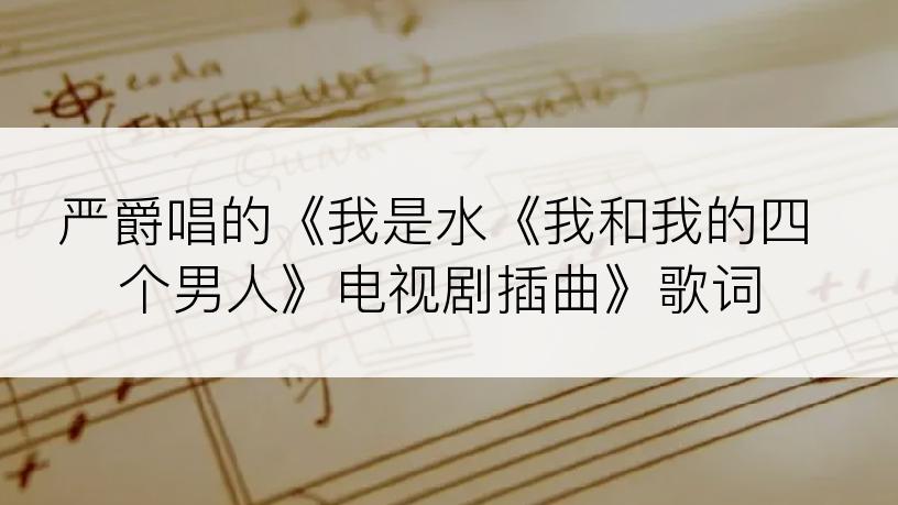 《我是水《我和我的四个男人》电视剧插曲》 是严爵演唱的歌曲,时长04分02秒,该歌曲收录在严爵2017年的专辑《我和我的四个男人》之中,如果您对这首歌曲歌词比较中意,那我们就一起来学习和分享这首歌曲歌词吧!