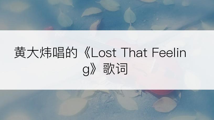 《Lost That Feeling》 是黄大炜演唱的歌曲,时长04分44秒,该歌曲收录在黄大炜2000年的专辑《秋天1944》之中,如果您对这首歌曲歌词比较中意,那我们就一起来学习和分享这首歌曲歌词吧!