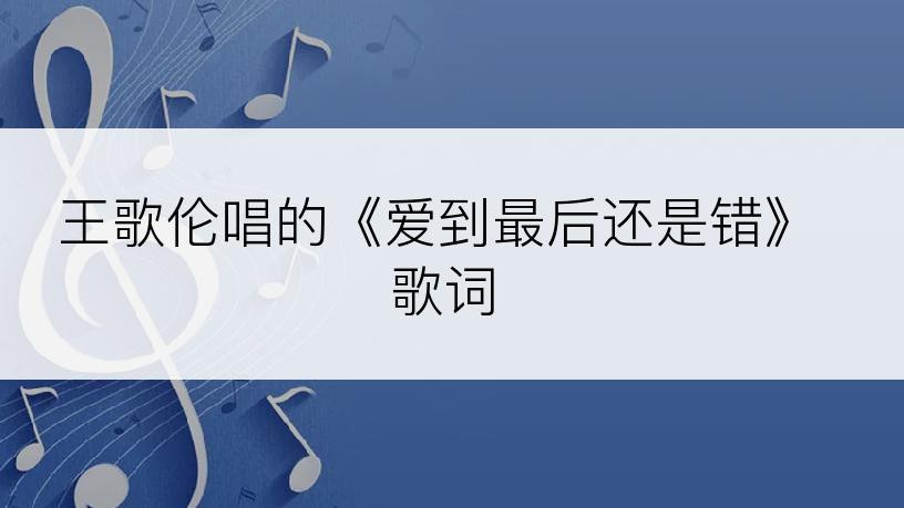 《爱到最后还是错》 是王歌伦演唱的歌曲,时长03分43秒,如果您对这首歌曲歌词比较中意,那我们就一起来学习和分享这首歌曲歌词吧!