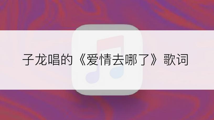 《爱情去哪了》 是子龙演唱的歌曲,时长04分01秒,该歌曲收录在子龙2015年的专辑《爱情去哪了》之中,如果您对这首歌曲歌词比较中意,那我们就一起来学习和分享这首歌曲歌词吧!