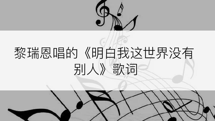 黎瑞恩唱的《明白我这世界没有别人》歌词