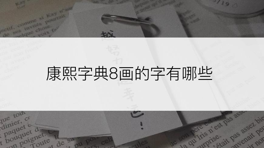 康熙字典8画的字有:岸[àn] 、昂[áng] 、把[bǎ] 、杯[ bēi] 、表[biǎo] 、炊[chuī] 等1、岸[àn](1)江、河、湖、海等水边的陆地:江~。上~。两~绿柳成荫。(2)(Àn)姓。(3)高大:伟~。(4)高傲:傲~。2、昂[áng](1)仰:~首。(2)精神振奋:激~。气~~。(3)(价钱)高:~贵。3、把[bǎ](1)用手握住:~舵。两手~着冲锋枪。(2)把持;把揽:要信任群众,不要把一切工作都~着不放手。(3)看守;把守:~大门。~住关口。(4)紧靠:~墙角儿站着。~着胡同口儿有个小饭馆。(5)约束住使不裂开:用铁叶子~住裂缝。(6)姓。4、杯[ bēi](1)杯子:茶~。~盘狼藉。举~痛饮。(2)杯状的锦标:银~。奖~。捧~。夺~。(3)姓。5、表[biǎo](1)外面;外表:~面。地~。由~及里。(2)中表(亲戚):~哥。~叔。姨~。姑~。(3)把思想感情显示出来;表示:~达。~态。~决心。深~同情。按下不~(说)。(4)俗称用药物把感受的风寒发散出来:吃服(fù)药~一~,出身汗,病就好了。(5)古代文体奏章的一种,用于较重大的事件:诸葛亮《出师~》。(6)古代测日影的标杆。见〖圭表〗。(7)测量某种量(liàng)的器具:温度~。电~。水~。煤气~。(8)姓。6、炊[chuī](1)烧火做饭:~具。~烟。(2)姓。扩展资料:相关词语(1)驳岸[bó àn]保护岸或堤使不坍塌的构筑物,多用石块砌成。(2)撑岸就船[chēng àn jiù chuán]比喻颠倒主从,不合情理。(3)激昂[jī áng](情绪、语调等)激动昂扬:~慷慨。群情~。(4)把握[bǎ wò]握;拿:司机~着方向盘。(5)干杯[gān bēi]喝干杯中的酒(用于劝别人喝酒或表示庆祝的场合):咱俩干了这一杯。为客人们的健康而~。(6)表扬[biǎo yáng]对好人好事公开赞美:~劳动模范。他在厂里多次受到~。(7)表示[biǎo shì]用言语行为显出某种思想、感情、态度等:~关怀。大家鼓掌~欢迎。(8)野炊[yě chuī]在野外用制式炊具或就便器材烧火做饭。
