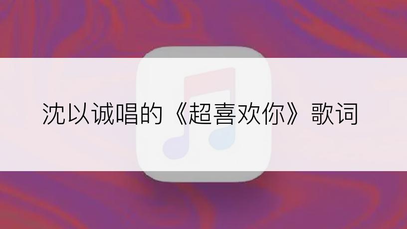 《超喜欢你》 是沈以诚演唱的歌曲,时长03分31秒,该歌曲收录在沈以诚2021年的专辑《超喜欢你》之中,如果您对这首歌曲歌词比较中意,那我们就一起来学习和分享这首歌曲歌词吧!