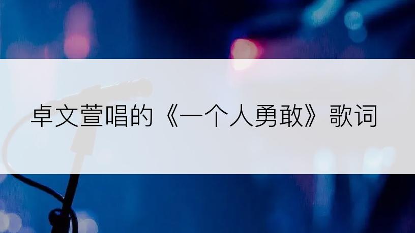 《一个人勇敢》 是卓文萱演唱的歌曲,时长03分55秒,该歌曲收录在卓文萱2008年的专辑《超级喜欢》之中,如果您对这首歌曲歌词比较中意,那我们就一起来学习和分享这首歌曲歌词吧!