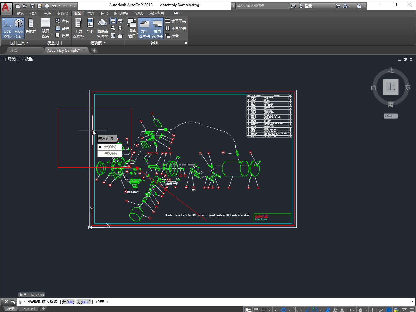 4.在命令菜单中选择【开(ON)】命令回车即可。