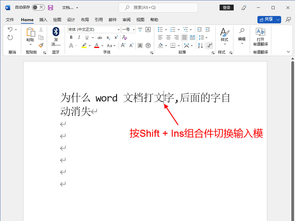 关于为什么word文档打字,后面的字自动消失相关问题,一般情况下,是由于开启了“Ins”输入模式,可以使用Shift+Ins快捷键关闭即可,以下介绍具体操作过程。